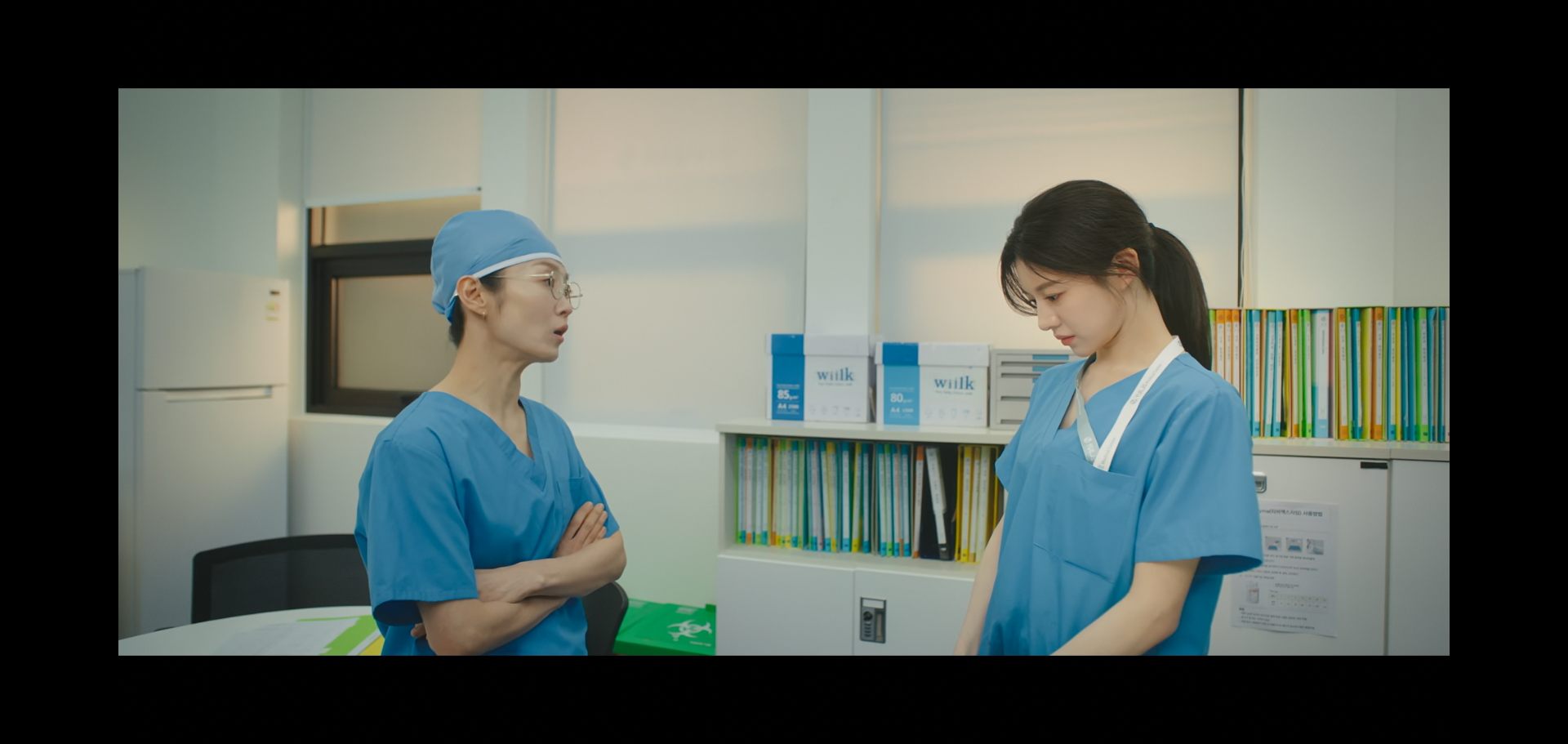 마귀할멈 서민정(이봉련) 산부인과 교수가 집도하는 수술방에서 오이영(고윤정)이 실을 수술패트에 올려서 뱃속에 들어가면 어떻게 하냐고 그걸 왜 올리냐고 욕먹고 찍힘...