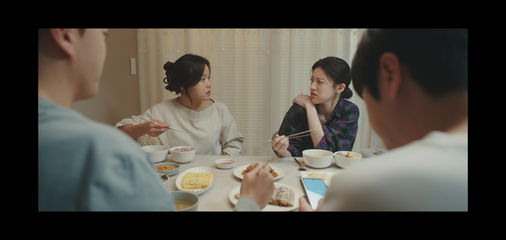 그러더니 식탁 밑에서 톡톡 발가락을 꼼지락거리는 화면이 나옴... 뭐야 ㅋㅋ 싶었는데, 이 둘의 발이 아니었음