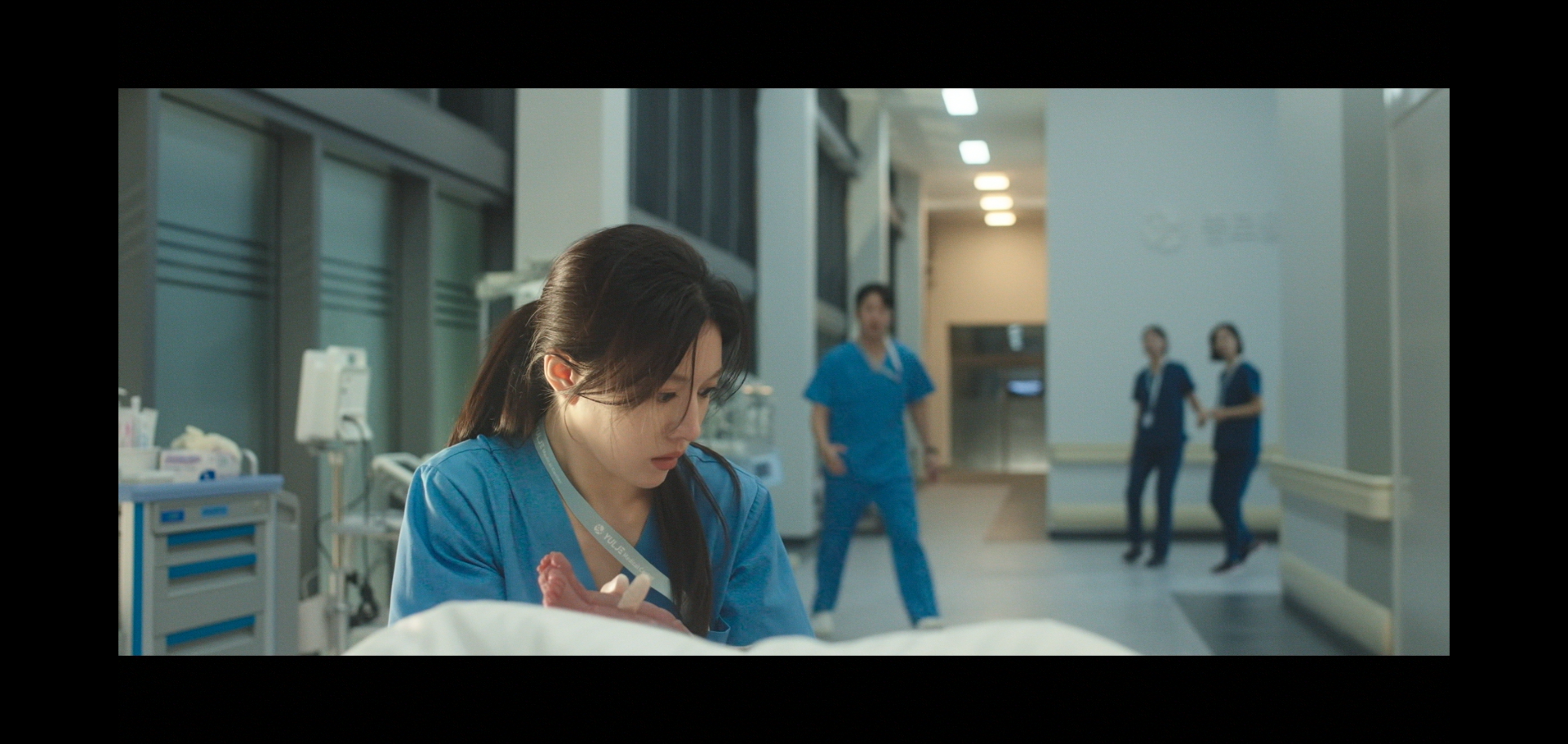 급하게 분말실로 가는 길에 산모가 못 참겠다고 힘주기 시작.. 일단 다들 급하게 멈추고 오이영이 아이를 받기 시작한다.