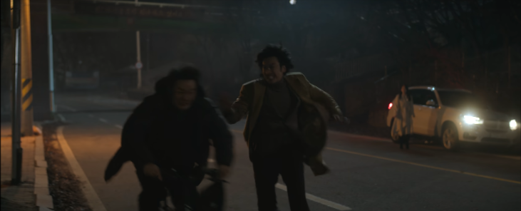 자전거 타고 지나가는 목격자(박해수)를 본 순간,