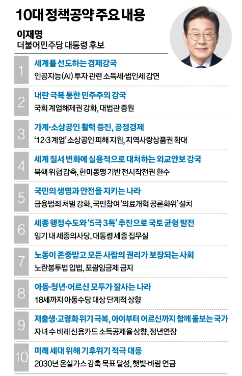 | 🔵 공식 공약 기반 | AI, 지역화폐, K콘텐츠, 에너지, 저출생, 탈모, 세종행정수도, 대북, 기본소득 등 |