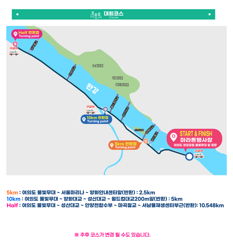 2) 일반접수 기간: 하프마라톤(21.0975km): 60,000원, 10km: 60,000원, 5km: 50,000원